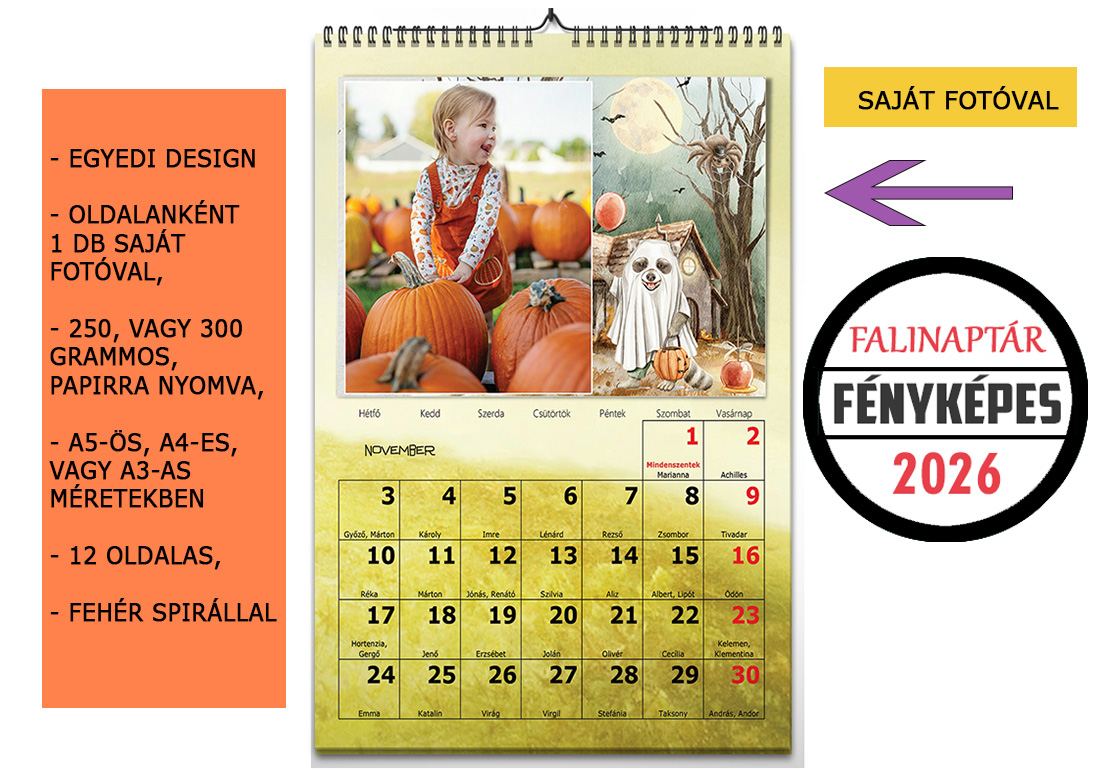 Fényképes egyedi falinaptár 2026 – Saját fotóiddal